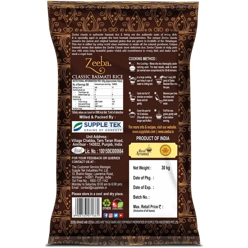 Zeeba Classic Basmati Rice 30 Kg
